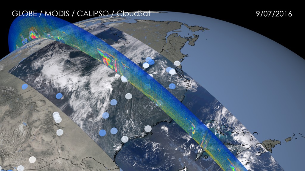 [1:49] In this animation, data from Aqua, CALIPSO, CloudSat and GLOBE Observer are combined to show how multiple observations reveal the structure of clouds.