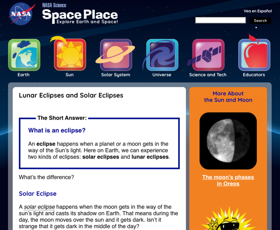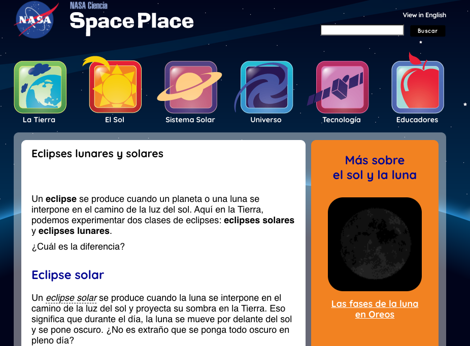 Salta a recursos en español. If you are an educator or otherwise leading a program related to eclipses, additional resources for facilitators are available in the Eclipse Toolkit for Informal Educators.