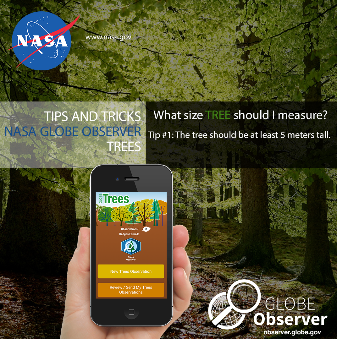 This section is for questions about how to use the app to take observations. If you have an overall app question, not specifically about the Trees tool, try the general FAQ page. Science-focused questions (such as why scientists study tree height and the NASA connections to the data) are covered on the Trees Science page.
