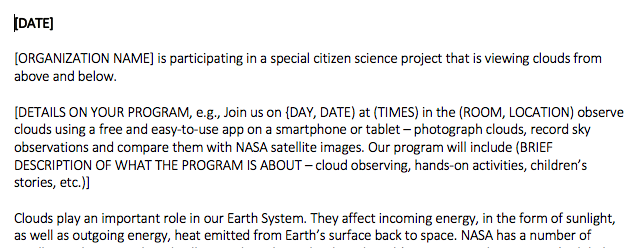 Clouds Printables and Promotional Materials - GLOBE Observer