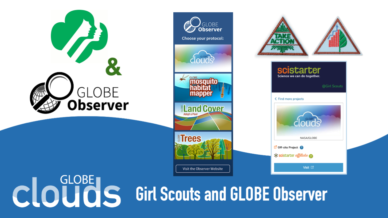 Girl Scouts has teamed up with SciStarter to curate projects and provide training and support for girls, volunteers, and others to deepen their engagement in citizen science and explore outdoor STEM. GLOBE Observer is one of the projects that Girl Scouts can do as part of the Girl Scout Climate Challenge (GLOBE Clouds), Girl Scout Tree Promise (GLOBE Trees), and Think Like a Citizen Scientist Journey (GLOBE Mosquito Habitat Mapper and Clouds). Learn more at https://scistarter.org/girlscouts-info and watch the SciStarter LIVE: Citizen Science for Girl Scouts webinar.