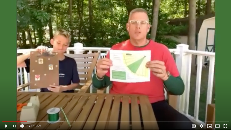 [12:29] Brian Campbell, science liaison and outreach lead for GLOBE Observer Trees, and his son Andy demonstrate how to make and use a simple paper clinometer to measure the height of trees. To do this activity, you will need a printout of the clinometer activity sheet, a straw, a pen or pencil, scissors, tape, string, and some sort of weight for the string such as a washer, nut or paperclip. A rigid surface such as clipboard or piece of cardboard may also be needed to attach the clinometer to as you are measuring the angle to the top of the tree.