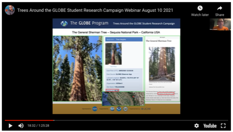 The Trees Around the GLOBE Student Research campaign has held a number of monthly webinars focusing on the scientific research of trees, and bringing in experts from around the world to share their current research experiences with trees and the importance of the GLOBE protocol measurements to understanding our planet's trees and their roles in our Earth's ecosystem. This page has a listing of archived webinars, as well as information about upcoming ones.